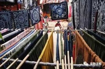 扎染 扎染工艺分为扎花和染色两部分。它是通过纱、线、绳等工具,对织物进行扎、缝、缚、缀、夹,等多种形式组合后进行染色。其目的是对织物扎结部分起到防染作用,使被扎结部分保持原色,而未被扎结部分均匀受染。从而形成深浅不均、层次丰富的色晕和皱印。织物被扎的愈紧、愈牢、防染效果愈好。它既可以染成带有规则纹样的普通扎染织物;又可以染出表现具象图案的复杂构图及多种绚丽色彩的精美工艺品,稚拙古朴,新颖别致。 扎染用的布料为土布、生白布或包装布,这些布料吸水性强,质地柔软,易于扎染。 扎花,有的地方称为扎疙瘩,即在布料选好后,按花纹图案要求,在布料上分别使用撮皱、折叠、翻卷、挤揪等方法,使之成为一定形状,然后用针线一针一针地缝合或缠扎,将其扎紧缝严,让布料变成一串串“疙瘩”。 扎花是以缝为主、缝扎结合的手工扎花方法,具有表现范围广泛、刻画细腻、变幻无穷的特点。 浸染,即将扎好的布料先用清水浸泡一下,再放入染缸里,或浸泡冷染,或加温煮热染,经一定时间后捞出晾干,然后再将布料放入染缸浸染。如此反复浸染,每浸一次即色深一层。浸染到一定的程度后,最后捞出放入清水将多余的染料漂除,晾干后拆去缬结,将“疙瘩”挑开,熨平整。被线扎缠缝合的部分末受色,呈现出空心状的白布色,便是“花”;其余部分成深蓝色,即是“地”。“花”和“地”之间呈现出一定的过渡性渐变的效果,多冰裂纹,花色丰富自然。 扎染取材广泛,常以当地的山川风物作为创作素材,其图案或高山彩云,或飞花蝶影,千姿百态,妙趣天成。